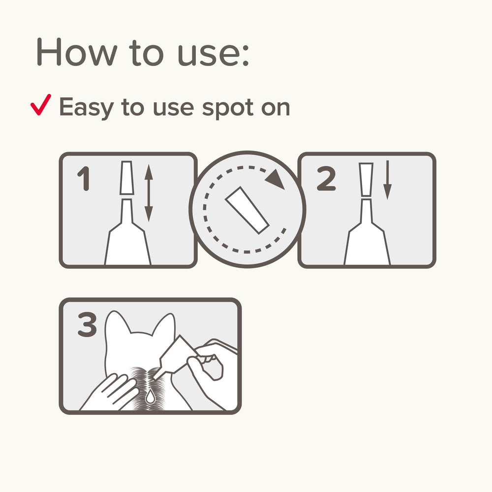 Weigh your cat carefully and use the following table to calculate the correct dose. Apply one tube per 2.5kg of bodyweight.